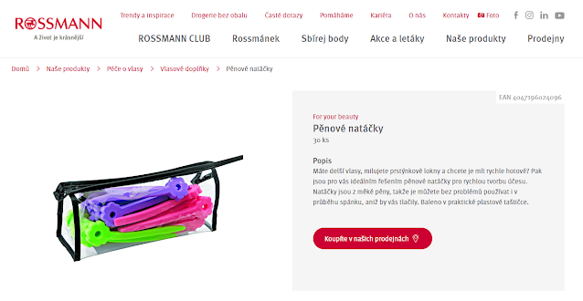 A nákupům drobná "nepodstatná" zpráva pro milovníky vintage fashion. Popadl mě nějaký amok a řekla jsem si, že si seženu natáčky a zkusím je i použít. A pak jsem zjistila, že kupodivu není tak snadné sehnat něco, čím mojí babice přetékala koupelna. Je dokonce problém sehnat solidní i na ebay... Třeba ty polštářkové s drátkem uvnitř (aka výrobní cena tak 5 halířů), které používá třeba Rachel Maksy, vás vyjdou na 200 kaček za 10 kusů. Ale pokud potřebujete rychlý fix, tak pěnové natáčky seženete v Rossmannovi! Fakt... Za 80 korun dostanete tyhle divné pěnové kytičky, kterých je tam celých 30 = je to levnější než na ebay. Najdete je někde u šamponů a laků na vlasy. Pokusím se o nějakou aktualizaci, až je vyzkouším...